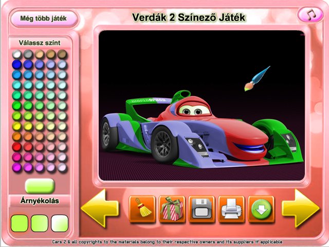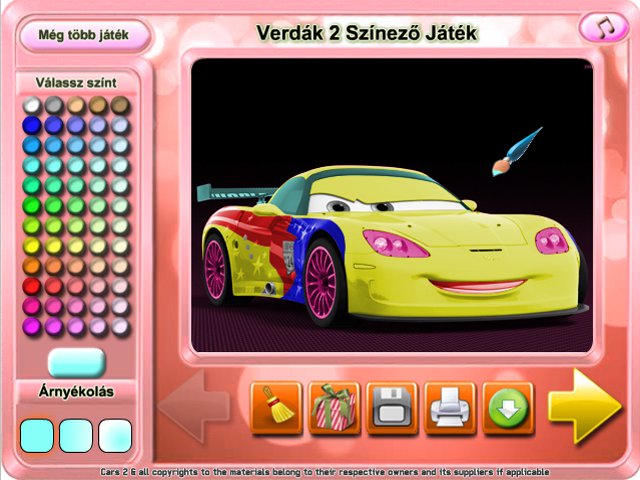 Láttad már a nagysikerű animációs film, a Verdák második részét? Biztosan neked is megvannak a kedvenc szereplőid belőle, igaz? Találkozz most újra legkedvesebb verdáiddal, és fesd ki őket az új színezős játékban, a Cars 2 Color-ban! Válaszd ki a kedvenc színeidet, és adj nekik új ruhát! A Cars 2 Color-t a gyerekek és a felnőttek egyaránt szeretni fogják. Próbáld ki most, és színezd ki kedvenc Verdák 2-sztárjaidat!
