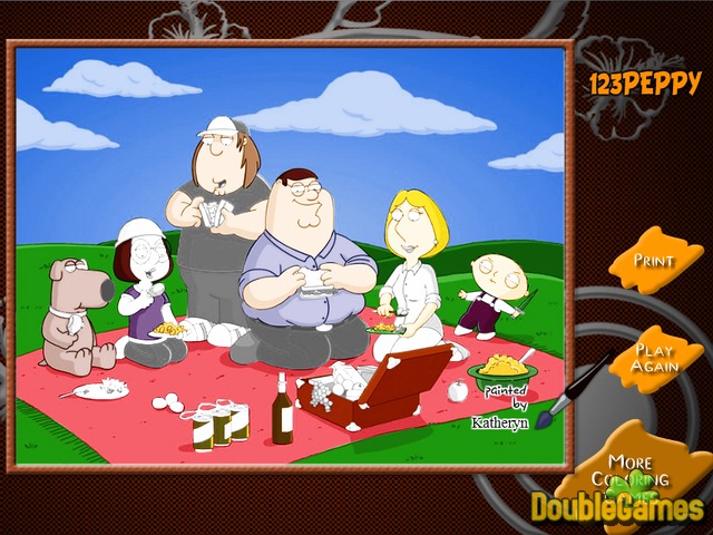 A Family Guy Online Coloring egy jópofa flash online játék a kedvenc szereplőiddel a híres felnőtteknek szóló animációs filmből, a Family Guyból: Peterrel, Loisszal, Meggel, Chrissel, Stewie-vel és Briannel. Bújj a grafikusok bőrébe, és színezd ki te a karaktereket! Kedvenc szereplőid már várnak, hogy kiszínezd őket! Írd be a nevedet is, hogy mindenki tudja, kinek a munkája a gyönyörű kép! Nyomtasd ki a műved, és tedd ki a szobádba! Próbáld ki most ezt a remek színezős játékot, a Family Guy Online Coloringot teljesen ingyen, jó szórakozást hozzá!