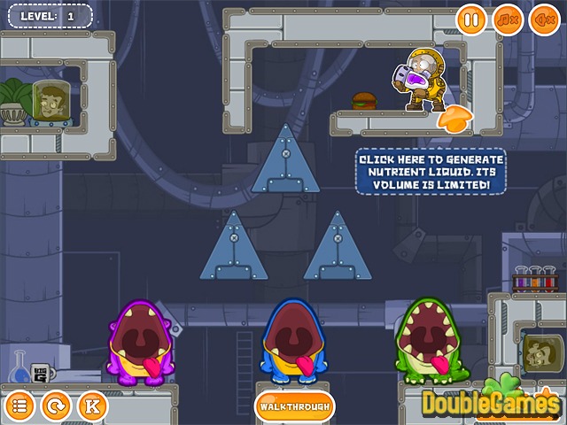 Vegyél részt egy szokatlan tudományos kísérletben legújabb izgalmas és lebilincselő logikai játékunkkal, a Feed Me Moar-ral! Képzeld el, hogy egy tudós vagy, aki különböző kísérleteket végzett a laboratóriumában, de valami hiba csúszott a dolgokba: a kísérleti állatok szörnyekké változtak! Most minden ügyességedre szükséged lesz ahhoz, hogy elláthasd őket. Etesd meg az állatokat a lila folyadékkal, használd a különböző gépeket és tárgyakat! Teljesítsd az összes kihívásokkal teli pályát ebben a hihetetlenül izgalmas és lebilincselő játékban! Próbáld ki most a Feed Me Moar-t teljesen ingyen!