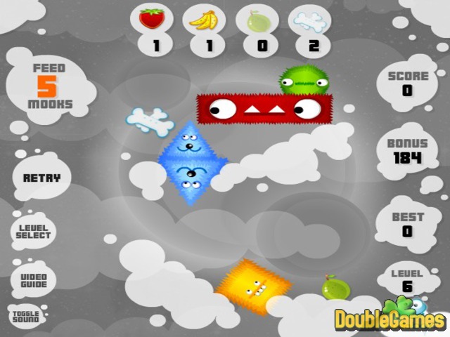 A Feed the Mooks-ban rengeteg éhes kis lénnyel találkozhatsz, akiket meg kell etetned. Tedd a megfelelő színű gyümölcsöt a mookok elé, vagy vezesd őket az élelemhez, hogy megtisztíthasd tőlük a pályát. A játék könnyű és szórakoztató, de néha nem árt felidézned a fizikai törvényszerűségeket ahhoz, hogy végrehajthasd a feladatot. A mookok megetetése szintről szintre egyre nehezebbé válik, de legalább van benne kihívás. Próbáld ki most a legújabb online játékot, a Feed the Mooks-ot teljesen ingyen!