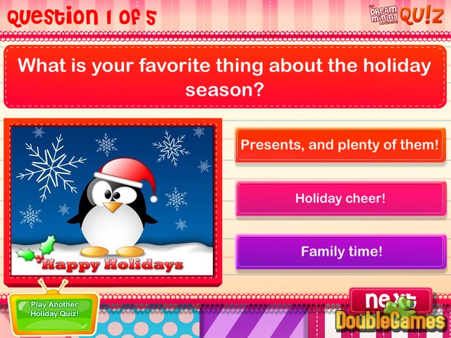 Felkészülni a közelgő téli ünnepek, a vicces online játékunkban Holiday film kvíz! Milyen filmeket szeretsz, és akar-hoz néz a jól megérdemelt karácsonyi vakáció alatt? Megtudja, karácsonyi különböző kérdések megválaszolásával. Amikor befejezte öt egyszerű kérdések megválaszolásával, látni fogja a személyes eredménye. De hé, ne, nagyon komoly, csak fenyő szórakoztató tette. Játszhatsz a Holiday film kvíz, és most teljesen ingyen.