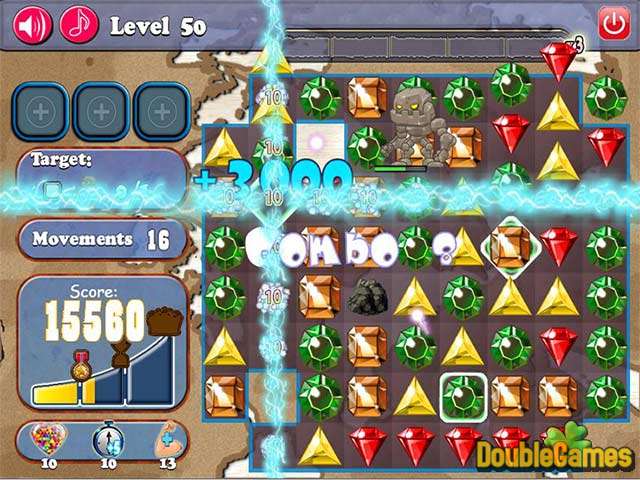 Match ékszerek, és hozzon létre félelmetes kombináció ebben az izgalmas mérkőzés 3 kaland! Ügyesen használja booster beállít hatalmas lánc robbanások, ahogy felfedezni egy ismeretlen világban, és szembe egy hatalmas számos ellenséget vár, hogy megállítson.
