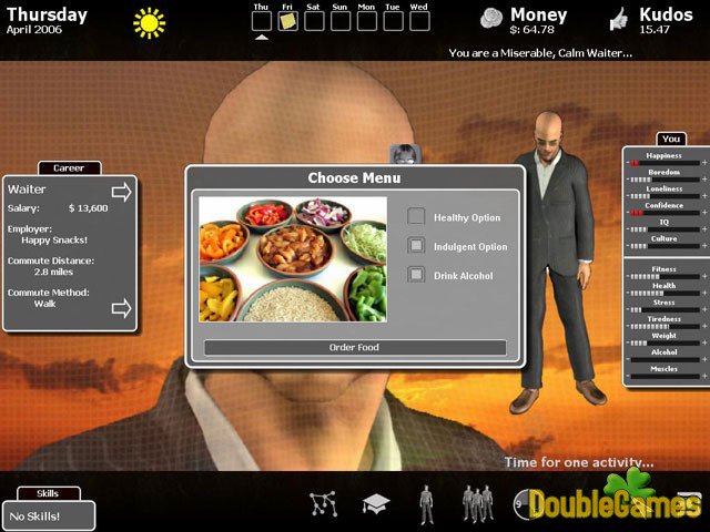 Kudos egy rendkívül addiktív játék, amely lehetővé teszi, hogy hozzanak létre és a karakter egész életét! Ön dönti el, ha azok munkáját, akik azt tedd meg, és mit nem a pihenést és a nő saját képességeit. Azt akarod, hogy egy ügyes atlétikai brainiac orvos? Vagy egy gondtalan szaxofon játszik taxi driver? Inkább vásárol, vagy ül a díványon, és tévézni? Szocializál barátaival, vagy játszani a kutya? Tanulmányi önsegítő könyv, vagy olvasd el a bulvárlapok? Ez a felhívás a Kudos, a játék, semmi más!