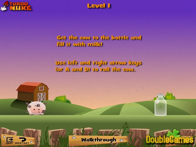 A Mooo! Egy vicces játék, amely a fizika törvényeit veszi alapul. A játék főszereplője egy nagy kövér tehén. A célod az, hogy a tehén elérjen a tejesüveghez. A balra és aj obbra nyíllal görgetheted a tehenet. Tüntesd el a szénakazalokat, a falakat és más akadályokat úgy, hogy rájuk kattintasz. Minél gyorsabban oldod meg a feladatot, annál több pontot kapsz. Ne engedd, hogy a tehén leguruljon a képernyőről! Ötven vicces pályán kell felderítened a folyamat logikáját. Ezt az izgalmas logikai játékot kis gyerekek is játszhatják. Gyerünk, gurulj előre!
