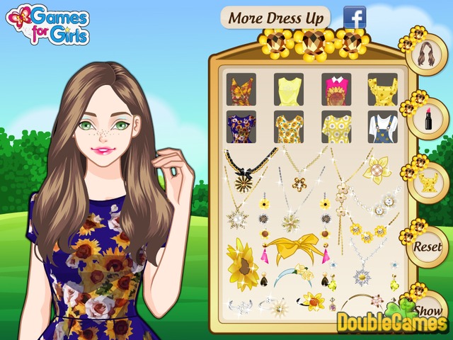 Emma egy csinos lány, aki szereti viselni trendi és divatos ruhákat. Van egy hét szünet, és el akar menni, hogy ő szeretett nagyszülők tanyán. Emlékszik, hogy a nőnek gyönyörű napraforgó kertjükben. Mivel Emma 6 éves volt, akit szeretett séta ezeket a nagy sárga virágok. Erre a nyaralás akar vásárolni néhány ruhát napraforgó minták és máris megy, hogy segítsen neki megtalálni valamit szép és teljes a megjelenés, gyönyörű make-up! Játssz online játék Sunflower Loving ingyenes!