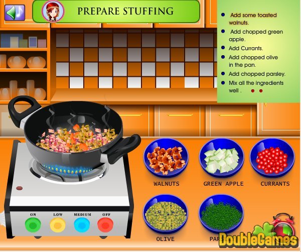 Szeretsz főzőcskézni? Akkor próbáld ki ezt a fantasztikus online szimulációs játékot, a Thanksgiving Turkey-t teljesen ingyen. Sarának kell segítened a finom hálaadási pulyka elkészítésében és tálalásában, illetve megkínálni mindenkit ezzel a fejedelmi fogással. Kipróbálhatod magag szakácsként és kuktaként: össze kell vágnod a zöldséget és a gyümölcsöt, húst dababolnod, kenyeret szelned, összekeverni a hozzávalókat, megsütni őket, és meglepni a vendégeidet egy igazi finomsággal. Próbáld ki a Thanksgiving Turkey-t online most!